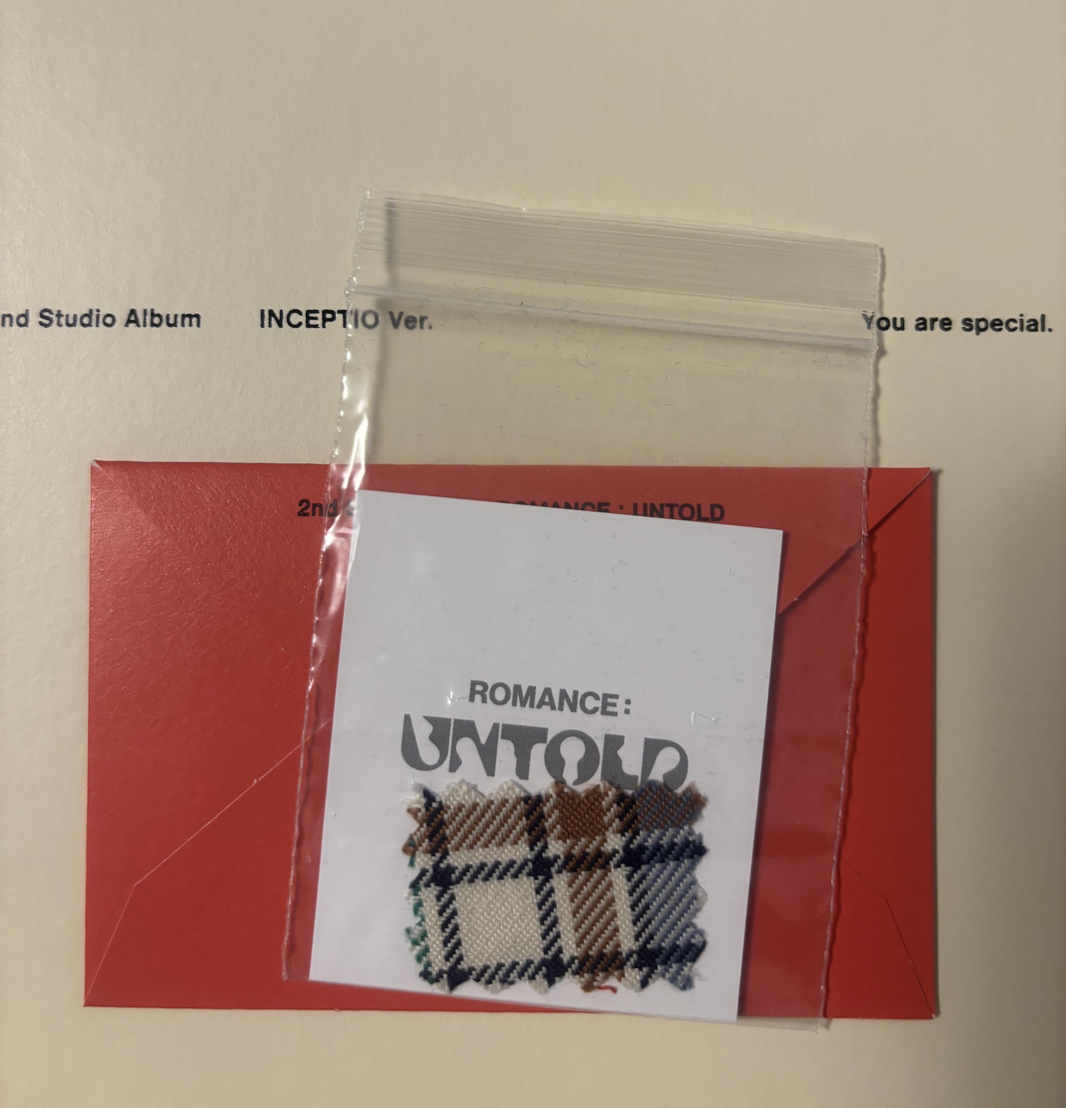 I just got my Romance: Untold album and couldn’t believe I got a fabric swatch lol