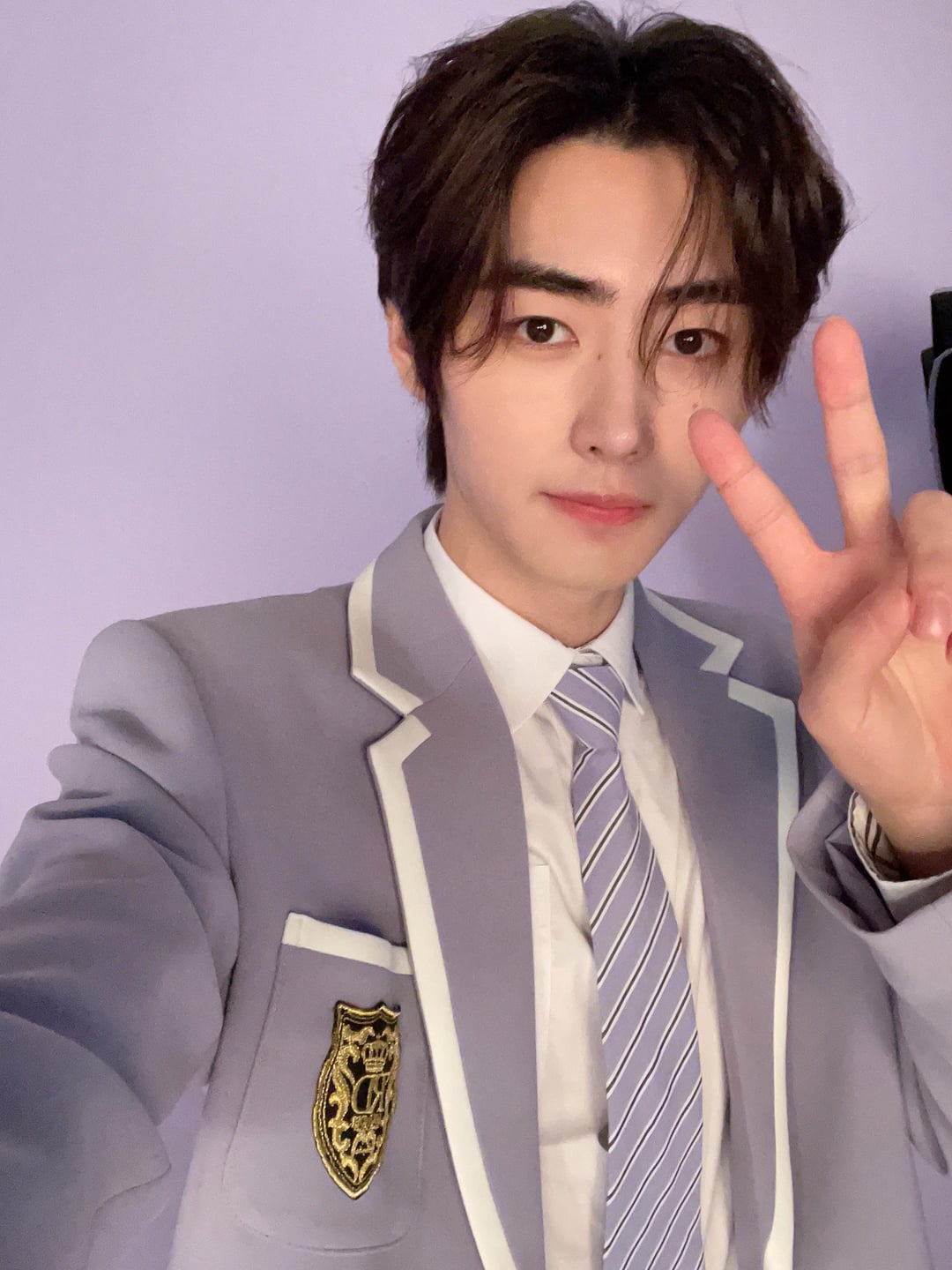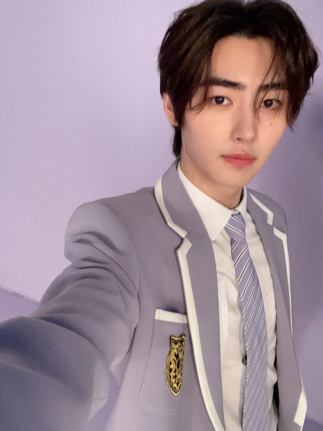 🔗 [source](https://weverse.io/enhypen/artist/2-123867459)> 🐧: 💜So sooo handsome 🥰 I love the shade of purple on the suit 💯