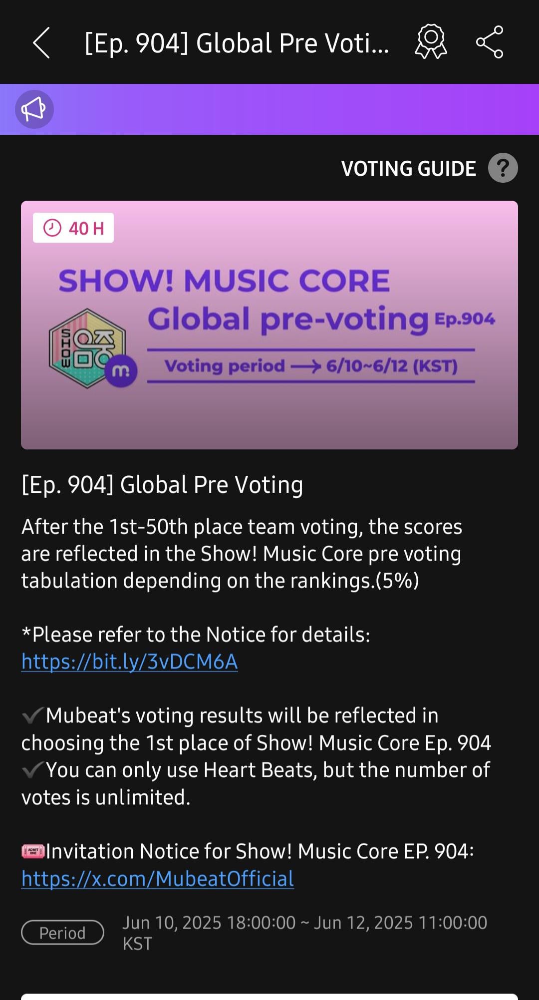 Pre-voting is now open for Show! Music Core on Mubeat until June 12