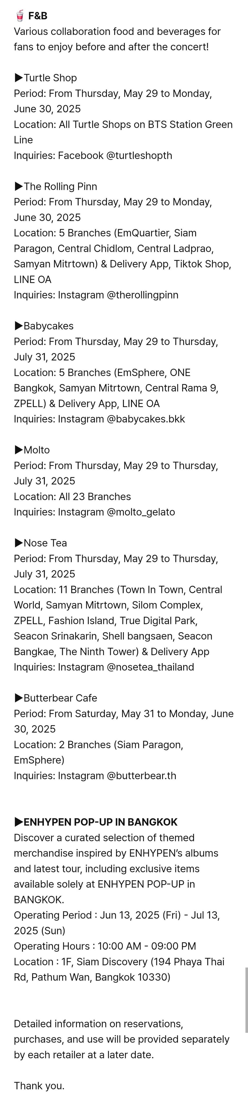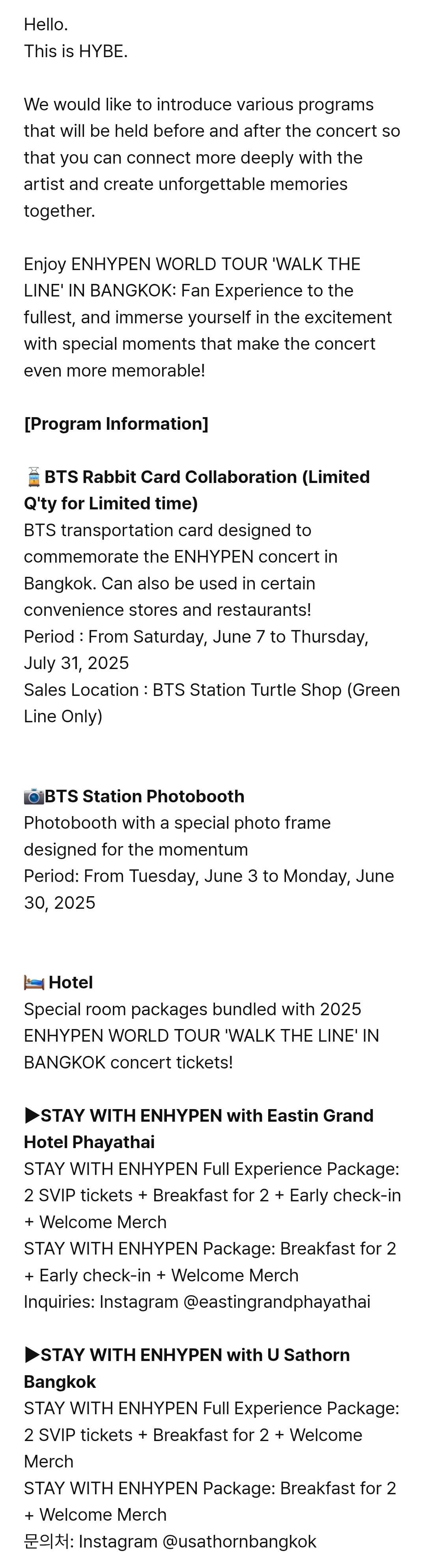 May 19, 2025 share250519 2025 ENHYPEN WORLD TOUR ‘WALK THE LINE’ IN BANGKOK: Fan Experience On-Site Program Information