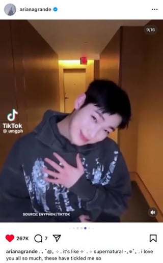 Ariana Grande posted Sunoo’s Kim Seonho Smile Challenge on Instagram!