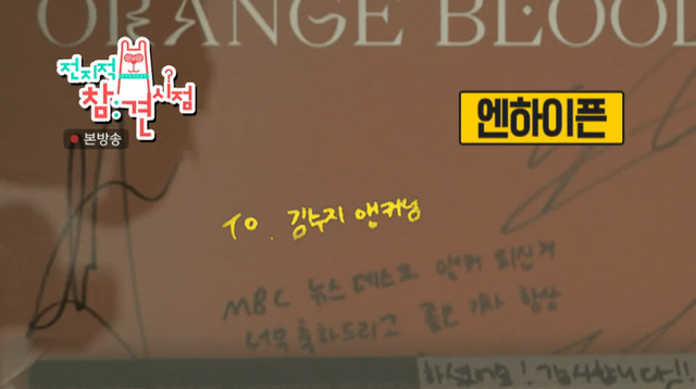 I was watching J-Hope's episode of Omniscient Interfering View and Kim Suji's segment was in the second half of the episode. They showed a view of her bookcase and it had a signed copy of Orange Blood (among other signed albums from different kpop groups like Illit! ♡).