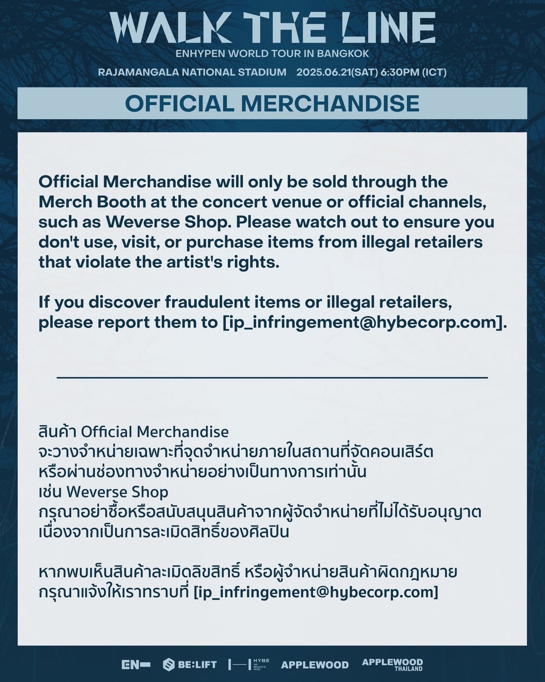 WALK THE LINE IN BANGKOK ENGENE ZONE – CONCERT – MERCH Information