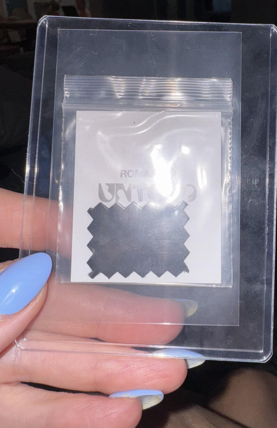 Hi! My daughter got one of these fabric swatches and I was wondering if any of yall knew who or any information — i think its a faux leather it has a satin look to it. Thank you all for any help!!!