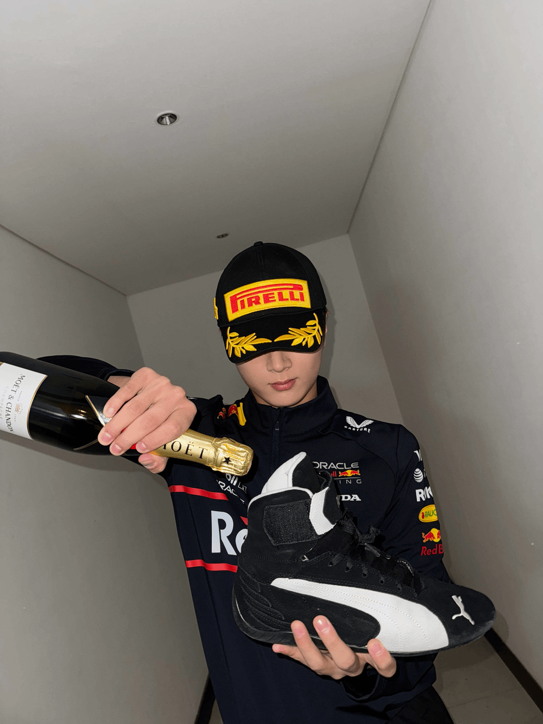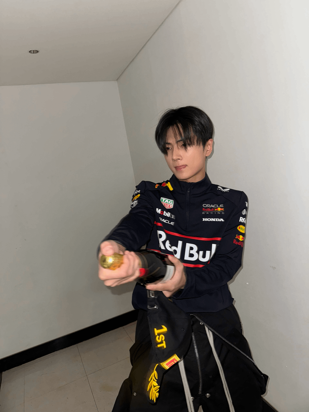 He looks so handsome in this F1 suit, and the last 3 pics are as expected for Enhaโs comedian lol๐คฃ