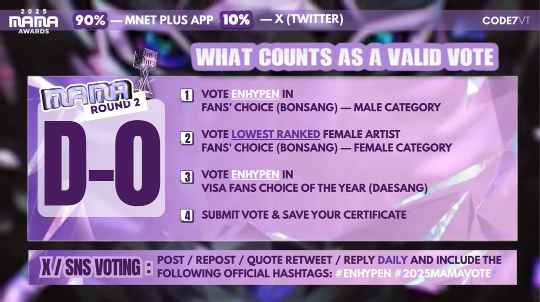 Please vote everyday and vote for Enhypen twice per day. See the guide in the picture.