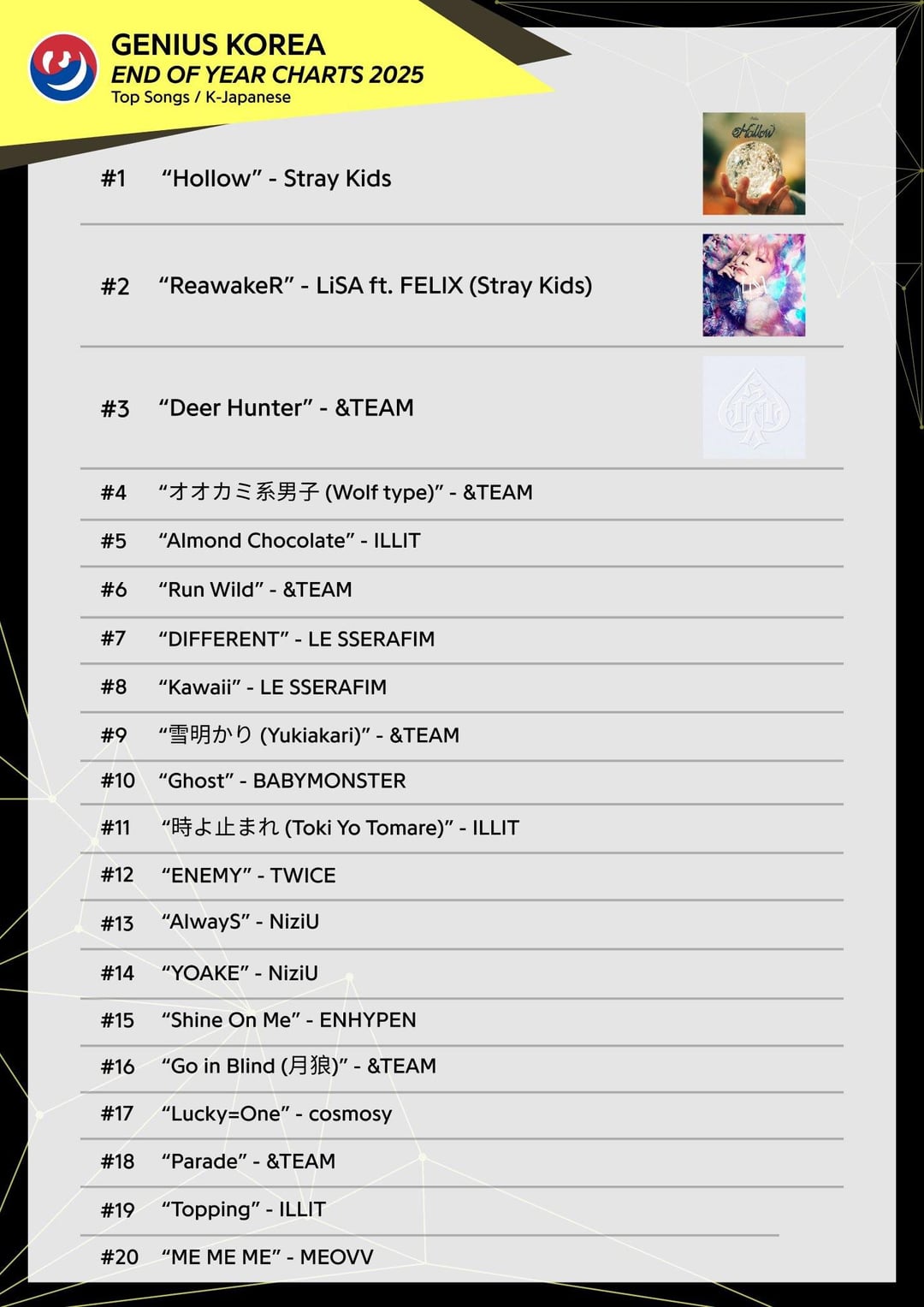 previous post251217 ‘Always’ cover by ENHYPEN’s Jay and ‘Helium’ ranks 3rd and 7th at 2025 Year-End Genius Korea Chart | Top K-Rock Songs