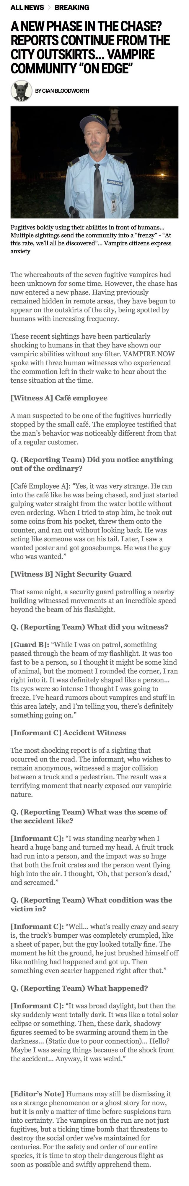January 5, 2026 shareπ A NEW PHASE IN THE CHASE? REPORTS CONTINUE FROM THE CITY OUTSKIRTS… VAMPIRE COMMUNITY βON EDGEβπ FLOOD OF VAMPIRE SIGHTINGS REPORTED β WITNESS PHOTOS RELEASED