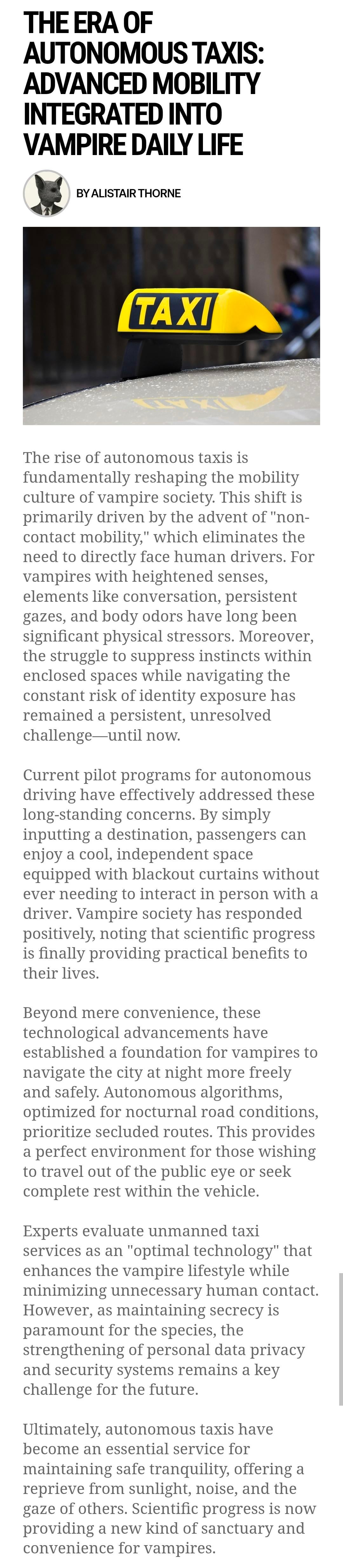 – The Era of Autonomous Taxis: Advanced Mobility Integrated into Vampire Daily Life