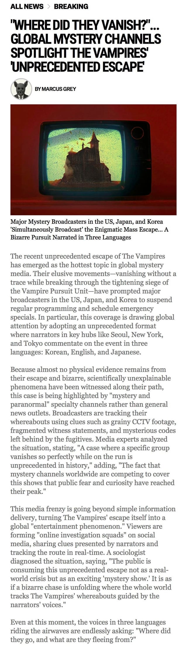 January 16, 2026 shareš "WHERE DID THEY VANISH?"… GLOBAL MYSTERY CHANNELS SPOTLIGHT THE VAMPIRES' 'UNPRECEDENTED ESCAPE'
