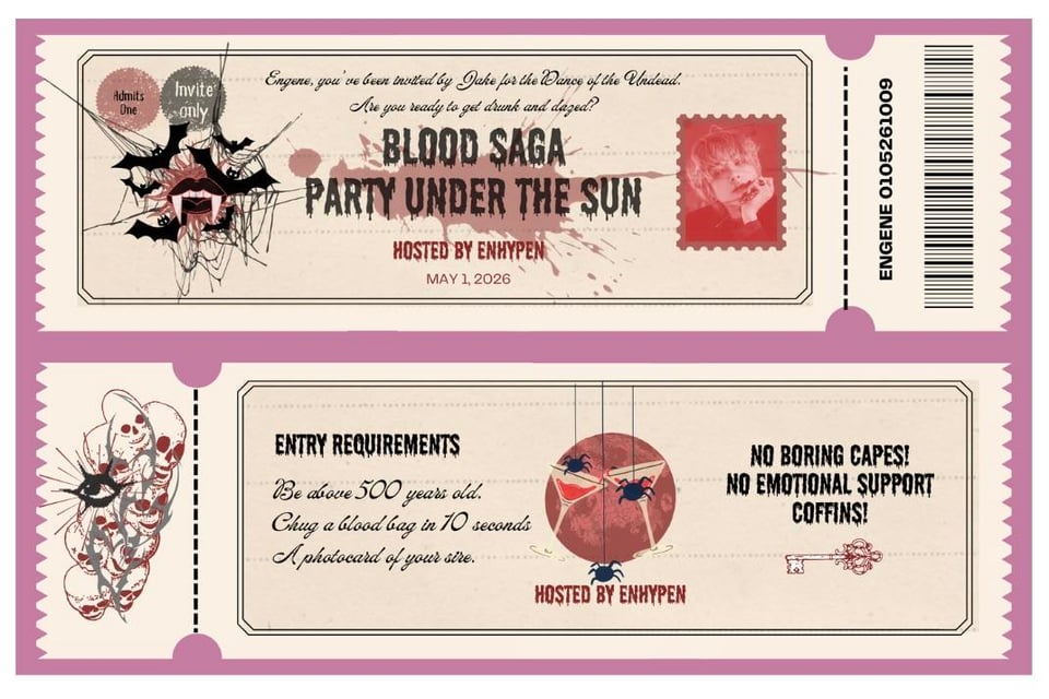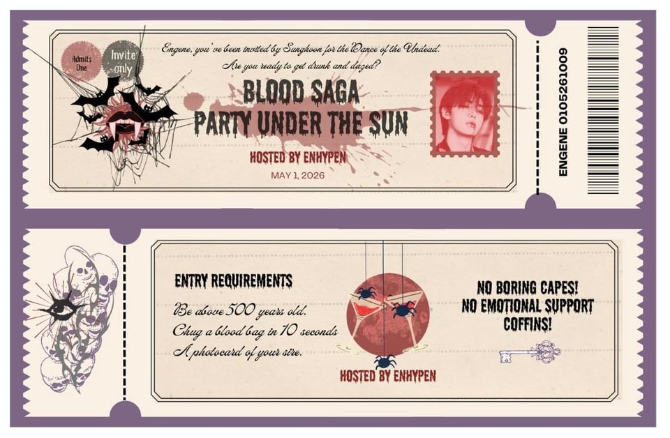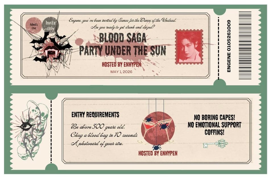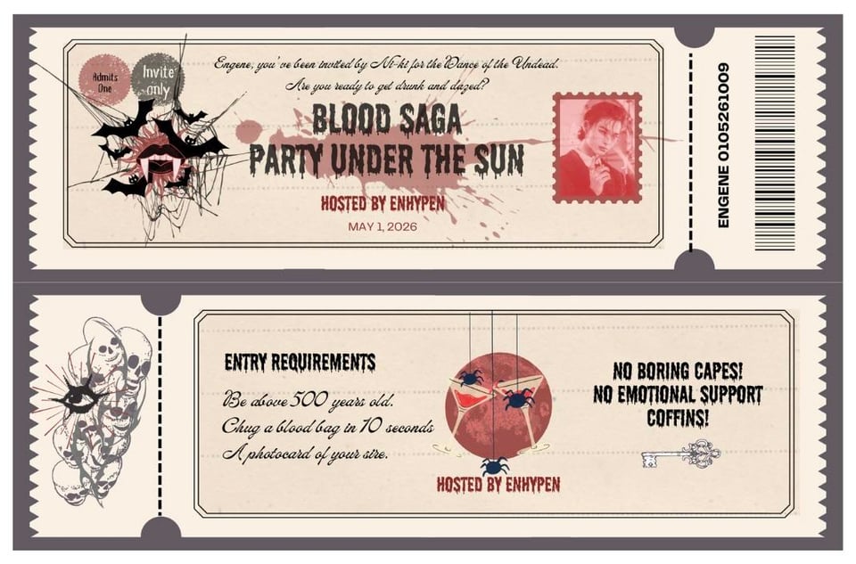 I made these tickets (some heavy lifting by Canva lol) to celebrate the kickoff of the Blood Saga Tour tomorrow. I’m beyond proud of the boys and can’t wait to see them shine. Here’s hoping for an amazing, successful run! 🥂🥳🎉