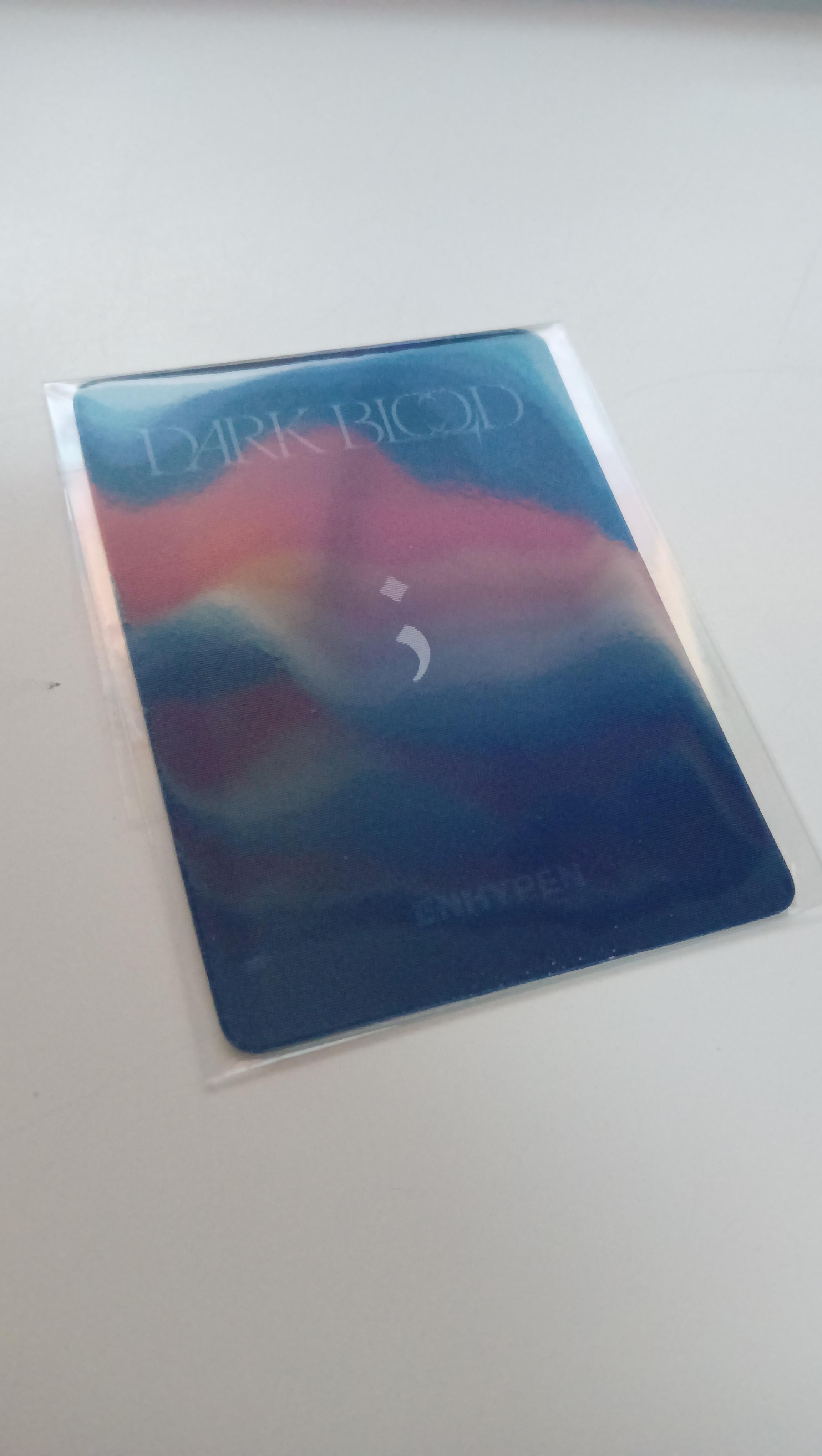 I bought the Dark Blood albums set, the engene set and the WEVERSE ver. This was around (I guess as a POB), but I dont know where it came from. It is a lenticular that ‘Dark Blood’ and ‘;’ disappear. Can someone help me? 💜