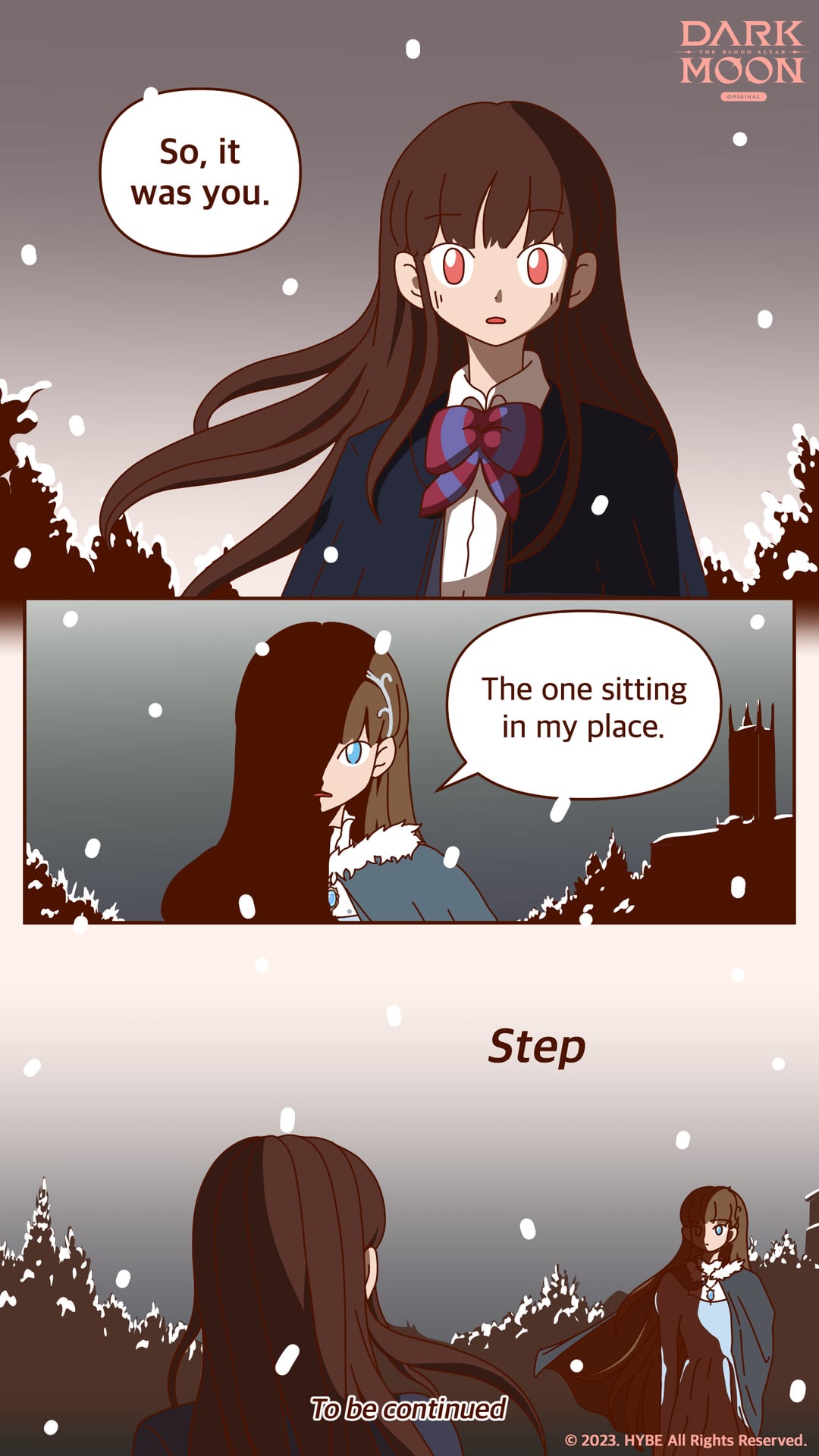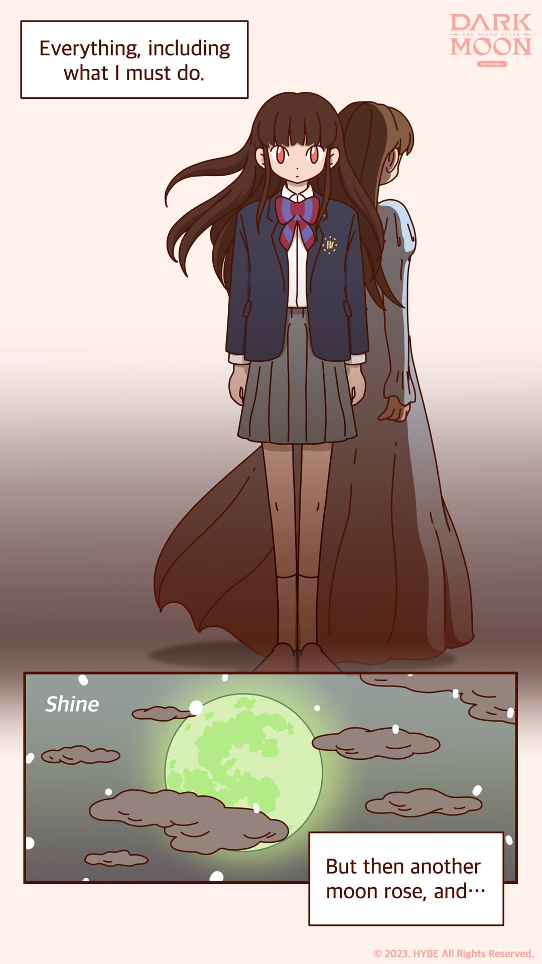 [A once-again risen moon and a mysterious girl. What will be the fate of the boys?](https://x.com/DARKMOON_HYBE/status/1711006105806270512?s=20)So it was Selen we saw at the end! This totally changes everything we knew about Sooha…