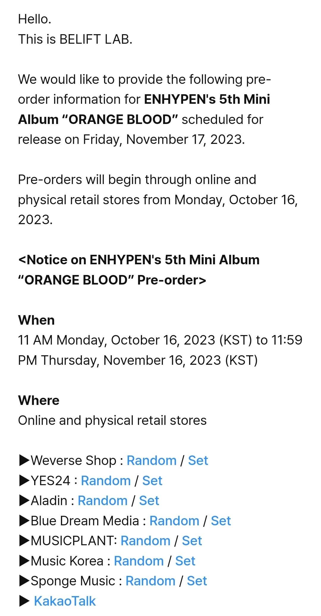 <Notice on ENHYPEN’s 5th Mini Album “ORANGE BLOOD” Pre-order>