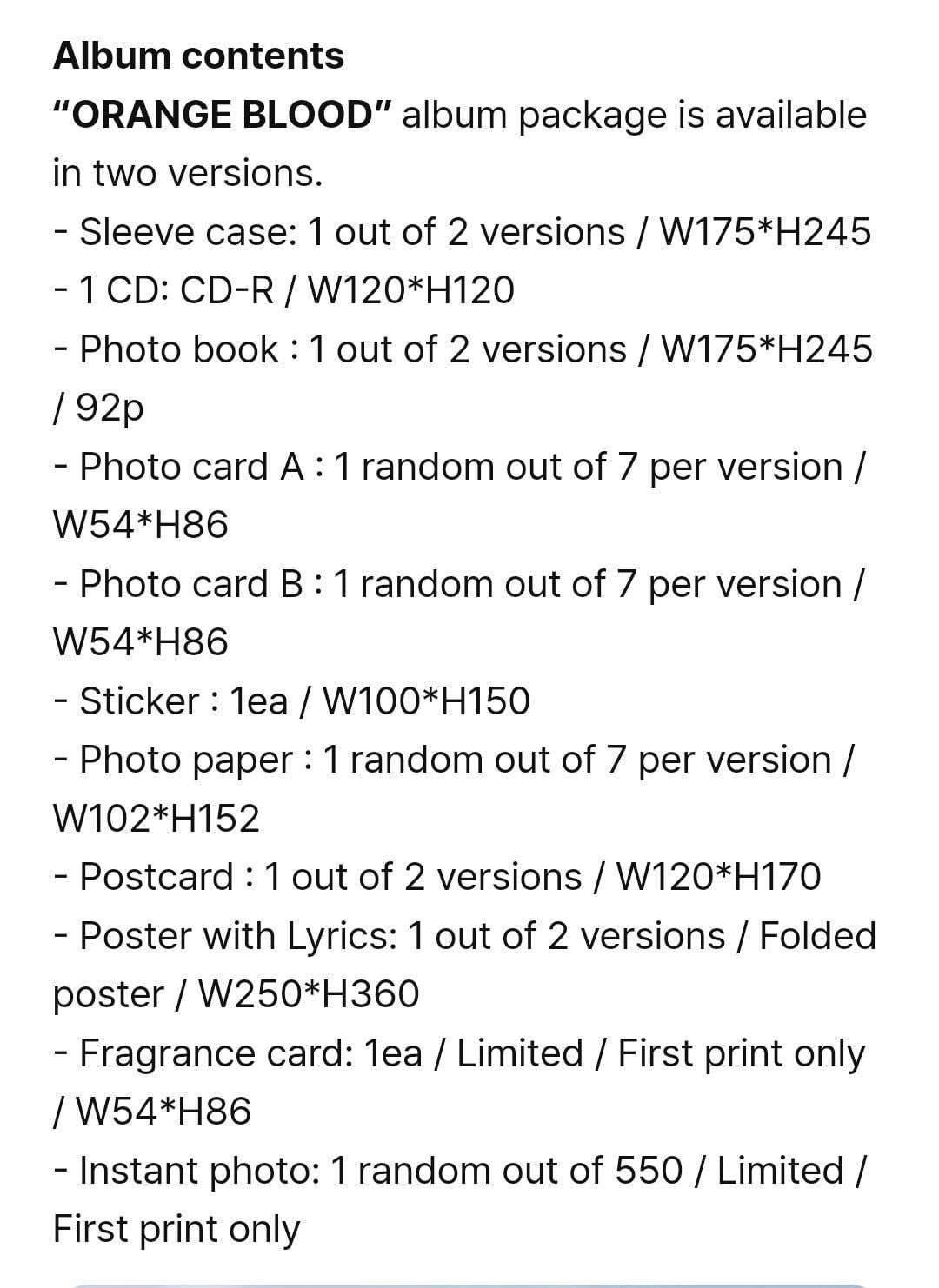 “ORANGE BLOOD” album package is available in two versions.