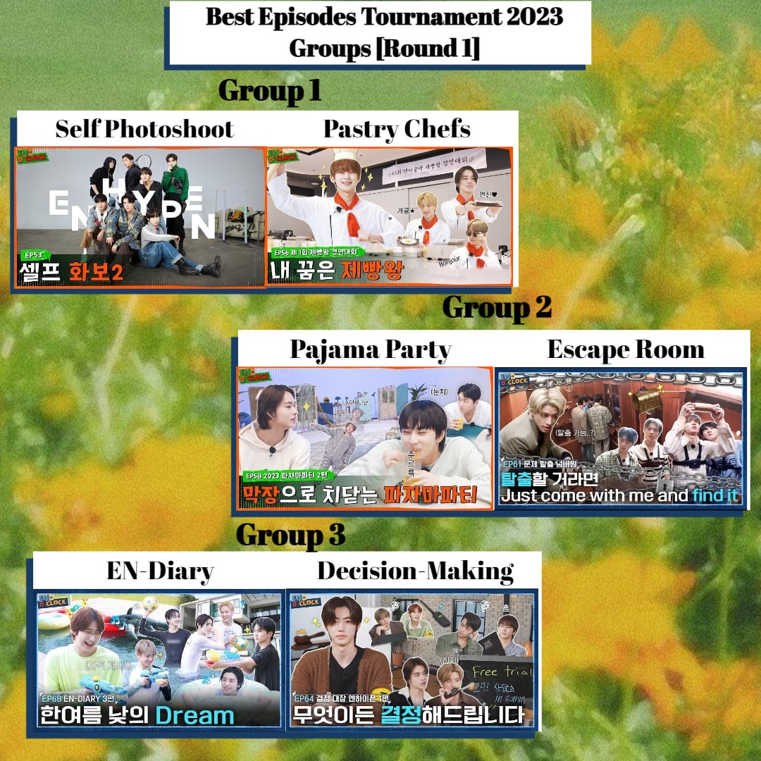 We are hosting a 2023 En-o’clock Tournament to crown the best episodes from last year. In [2022](https://www.reddit.com/r/enhypen/s/lnRYbfGRaL) our winner was the Among Us episodes.