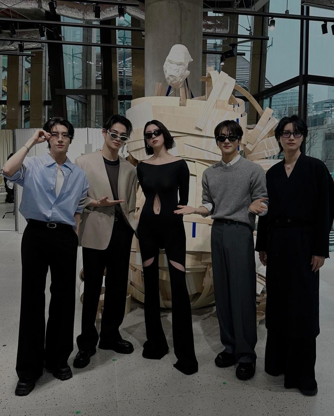 Miyoshi Ayaka and Dori Sakurada with Jake, Ni-ki and Jungwon at the Gentle Monster Aoyama Flagship Store.