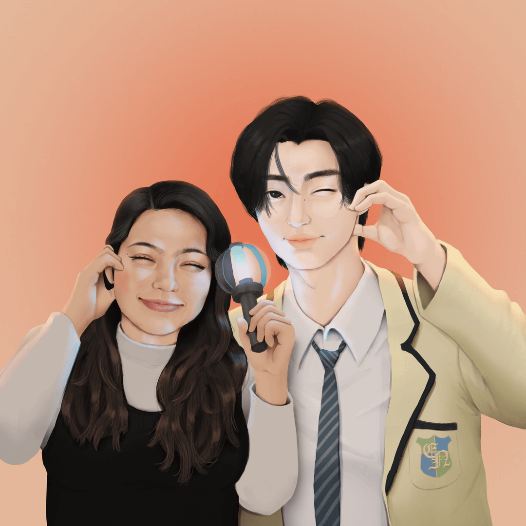 Our friend saw the illustration I made for my girlfriend with Sunghoon and asked if she could commission me to draw her with her bias, Heesung. She specifically wanted this version or look (clothes/hair) for Hee too.