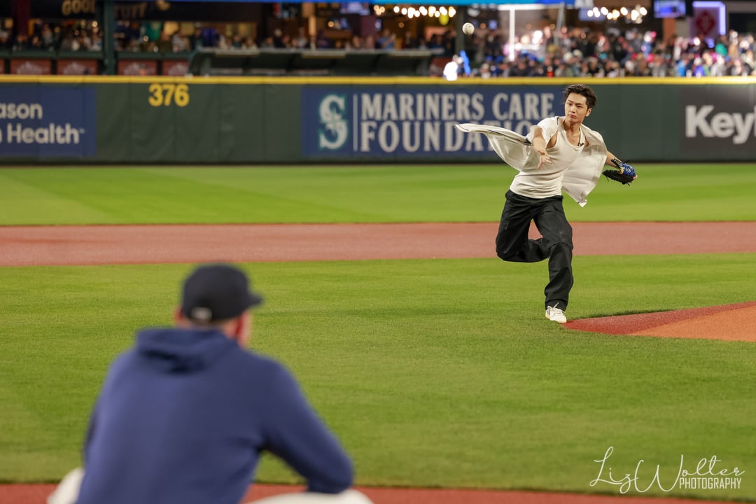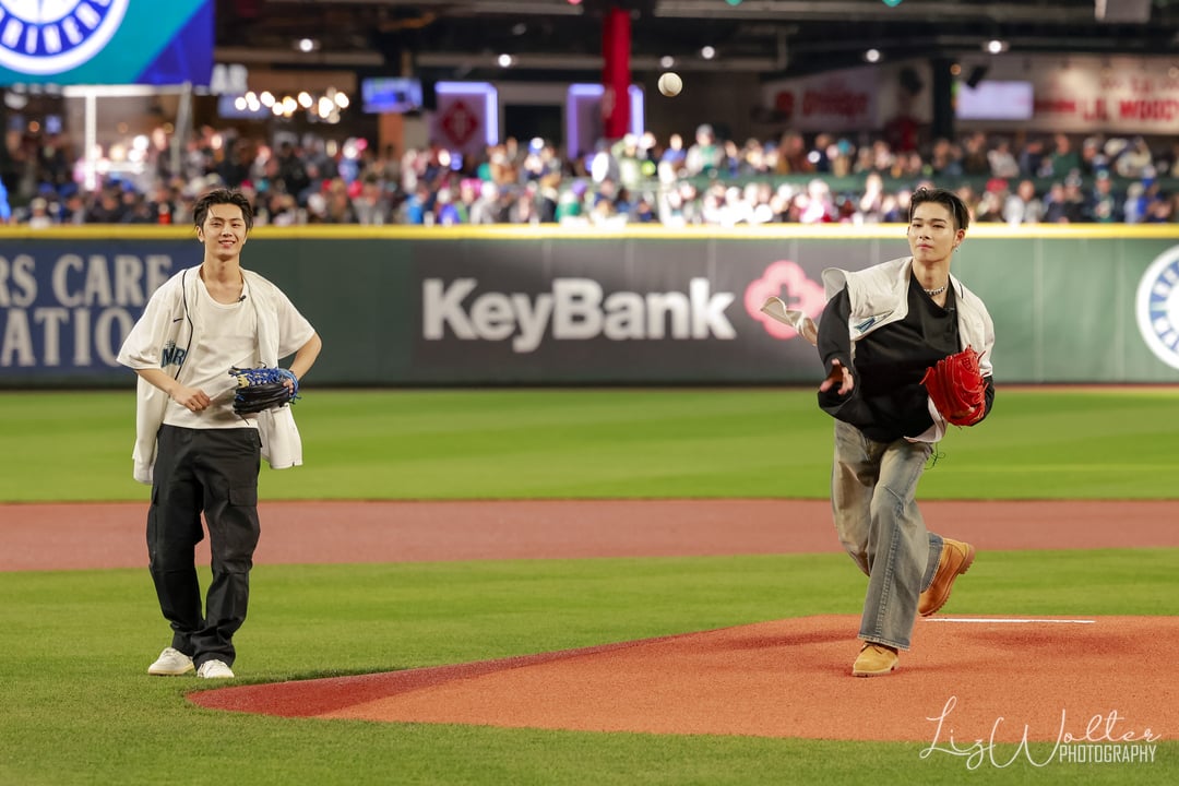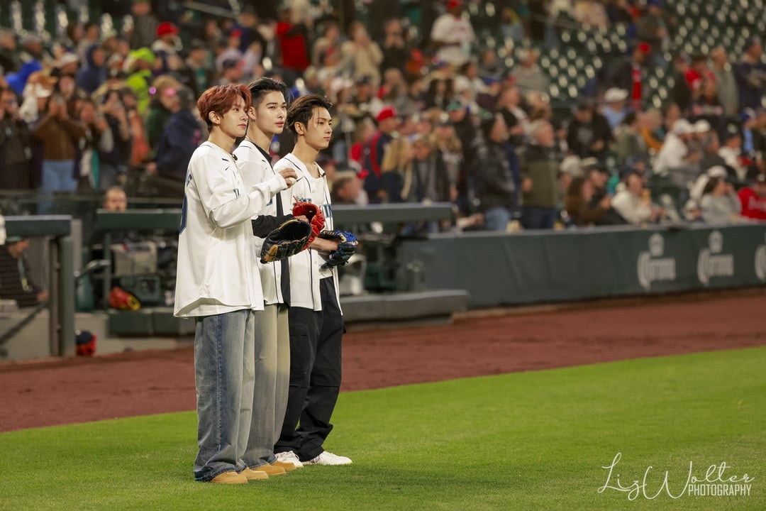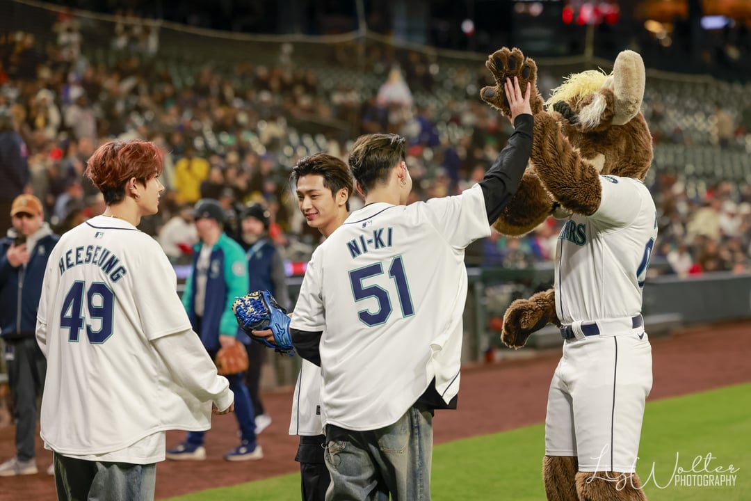 >ENHYPEN photo thread! Here are the photos our photographer on assignment @Wolter_Liz got of the three members of @ENHYPEN that threw out ceremonial first pitches ahead of the @Mariners win!